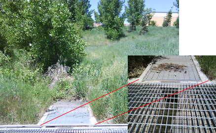 In the picture to the left, a standard extended detention water quality pond was designed in an area with very dense landscaping. The maintenance crew complained of the outlet constantly clogging, and eventually removed the water quality plate.